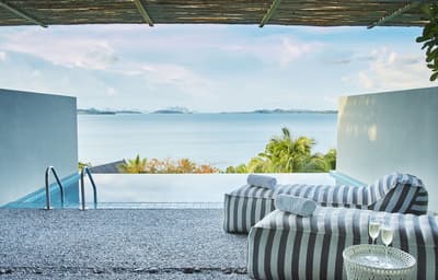 Elle dispose d’une piscine privée à débordement et d’une terrasse extérieure avec chaises longues pour se prélasser devant la magnifique vue sur la mer d’Andaman.
