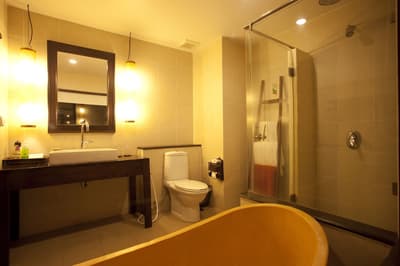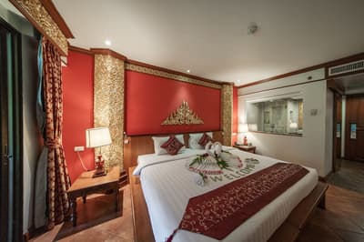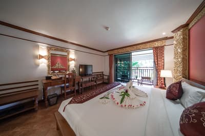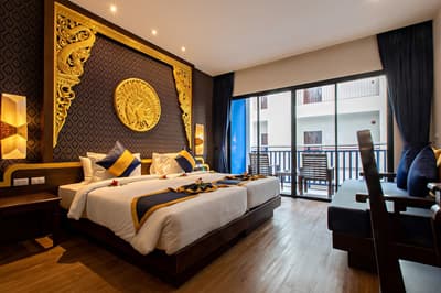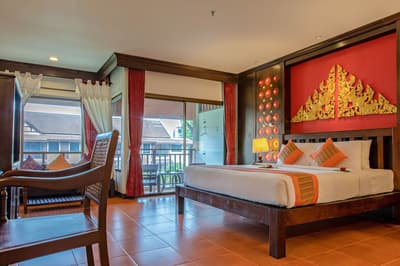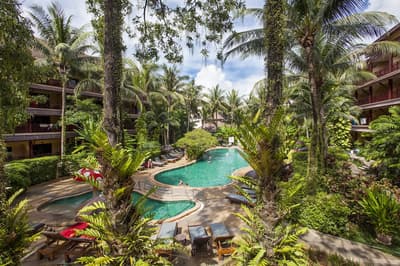 D’un côté, Kata Beach et son sable blanc, de l’autre, la ville de Phuket, ses marchés locaux et ses boutiques. Le Kata Palm Resort & Spa est un complexe familial chaleureux, qui plante son décor au beau milieu d’un parc arboré. Vous êtes ici dans un exotisme à son paroxysme, au confort absolu et à la décoration traditionnelle. Les couleurs pourpres de l'hôtel se rehaussent de filigranes d’or et les toits effilés tentent de toucher le ciel. Le tout créer une ambiance chaleureuse à savourer dès votre arrivée avant de plonger dans l'immense piscine ondulante, entremêlée de petits ponts et de fontaines. Les chambres sont réparties dans plusieurs bungalows et celles du rez-de-chaussée sont même accessibles par la nage ! À l'intérieur, le mobilier en teck et les têtes de lit en bois sculpté font de l’œil au soleil qui inonde déjà la terrasse. Et vos nuits seront aussi douces que les oreillers en soie. Les restaurants célèbrent une cuisine simple et efficace, sous d'immenses salas ouvertes sur les jardins. Buffet le matin et service à table le soir, ne ratez surtout pas les fruits de mer pêchés du matin même. Vous avez déjà défait vos valises, déplié votre fouta et enfilé votre maillot ? On vous attend à la plage de Kata, à seulement 10 minutes à pied.