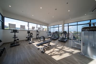 Elle offre un accès direct à la piscine depuis le grand balcon privé avec mobilier, d’où vous pourrez vous détendre confortablement en contemplant la magnifique vue sur la piscine.
