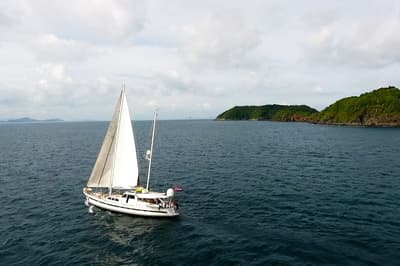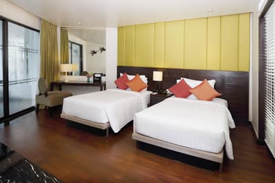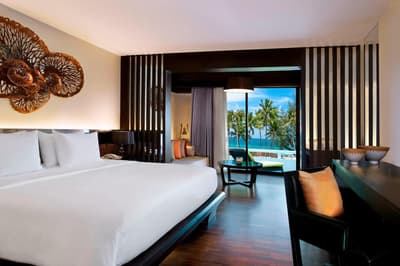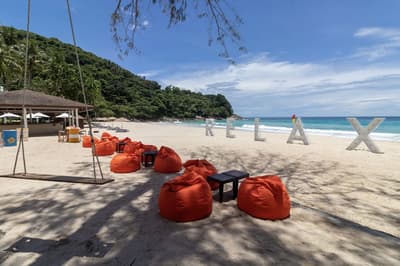 Plus d’espace qu’il n’en faut pour ce Meridien ! Il s’étale, pénard, entre deux collines boisées sur la côte Sud-Ouest de Phuket… un peu comme votre chat sur le canapé ! Sauf qu'ici, on parle de quatre bâtiments aux faux airs de paquebot, de 470 chambres et suites et de deux piscines de folie. La plus grande, 90 mètres de long sur 60 de large, ressemble à un lagon. L’autre réunit plusieurs bassins de toutes les formes, dont une pataugeoire à l’ombre, très pratique pour les enfants. Quelques-uns des dix restaurants et bars occupent des pavillons inspirés des pagodes traditionnelles. Toutes les terrasses, tous les balcons sont orientés vers la mer d’Andaman, à perte de vue. Pas de jaloux ! Juste devant s’étend une merveille de crique, uniquement accessible par bateau. Autant dire qu’elle est réservée aux clients de l’hôtel. Sable fin et palmiers sur 500 mètres de long, eau turquoise et quelques vagues pour pimenter la chose : peut-on rêver plus beau terrain de jeu ? Si vous êtes sportif, vous avez de la chance : entre la piste de jogging et le parcours santé en bord de mer, les tournois de beach volley et de football sur le sable, les virées en hobie cat ou en paddle, il y a de quoi faire. Et si un jour vous voulez partir au large, il suffit de réserver le yacht privé de l’hôtel. Easy…