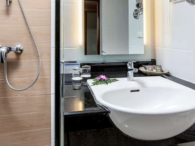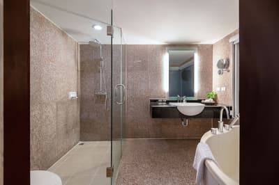 Installée parmi le jardin tropical, elle baigne dans une atmosphère calme et sereine. Agréable et très confortable, elle profite d’un balcon idéal pour apprécier le grand air et la vue. Elle dispose d’un bureau et d’un canapé-lit en chambre. Salle de bain chic avec douche à effet de pluie.