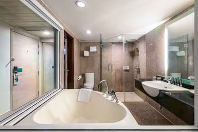 Wi-Fi, climatisation, minibar, télévision à écran plat, téléphone, lecteur DVD, sèche-cheveux et coffre-fort.