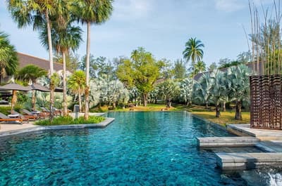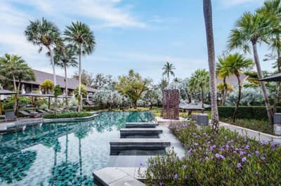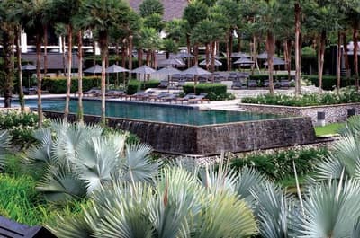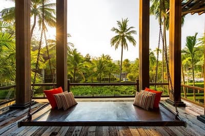Le Slate Phuket mérite toutes les heures de vol au monde : pépite design sur les rives de Nai Yang Beach, l'architecte Bill Bensley qui rêvait d'un sanctuaire à la fois industriel et fantaisiste a fait fort. Mais vos vacances ne s'arrêtent pas seulement à l'improbable architecture de l'hôtel : l'accès à neuf kilomètres de sable fin par un labyrinthe de Nature, les trois immenses piscines en feuilles d'ardoises et le spa au jardin tropical enchanté vous dépaysent pour l'année entière. Slidant à la vitesse de l'éclair vers l'appareil photo de votre smartphone, oubliez les filtres, vos publications Instagram n'auront nul besoin de retouches. Les suites et les villas mixent à merveille le look industriel et naturel, entre canapé rétro en cuir, larges baies vitrées en teck et poutres apparentes faites de vieilles traverses de chemin de fer. Les restaurants font rayonner la vaisselle de plats sophistiqués : barracuda pimenté au Black Ginger et buffets autour de la cuisine du monde sous le pavillon du Tin Mine. Les billards du Tongkah Tin Syndicate plantent le décor d'un de ces bars parfaits où flotte une odeur de whisky ambré et de cocktails artisanaux. Quant au Coqoon Spa, c'est suspendu à 10 mètres du sol aux branches d'un banyan géant que vous pourrez délasser vos tensions. Prêt à planer ?