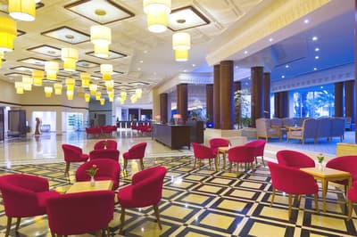 Immergé au cœur d’une magnifique palmeraie, en bordure de l’une des plus belles plages de Djerba, dont l’eau chaude et translucide n’a rien à envier aux Caraïbes, l’Iberostar Mehari Djerba vous fera déconnecter de votre quotidien. Un esprit club de vacances flotte sur ce beau resort rénové récemment, où l’enthousiasme et la joie des animateurs sont contagieux. Vous pensiez ne jamais vous déhancher dans une piscine ? À l’Iberostar Mehari, vous oublierez vos résolutions… Vous ne verrez quasiment pas vos enfants qui ne voudront plus quitter le Star Camp, le kid’s club du resort, dirigé par une équipe créative et énergique. Dans cet environnement stimulant, vous aurez envie de faire du sport : les fans de tennis apprécieront les nombreux terrains, propices à de belles parties surtout hors-saison quand le soleil est plus clément. En été, la planche à voile ou le kayak vous donneront l’occasion d’admirer les nuances turquoise de la mer. Certains préféreront malgré tout le farniente à l’ombre d’un parasol sur la longue plage de sable doré et si l’envie vous prend de vous faire dorloter loin de l’agitation, le spa de l’hôtel, avec sa belle piscine intérieure sous verrière, vous offrira un inoubliable moment d’apaisement.