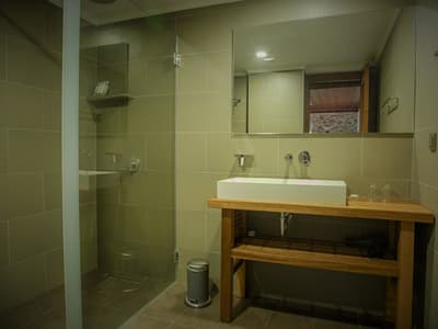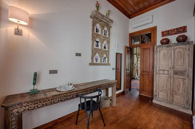 L’ensemble est joliment décoré avec des murs en pierres, un mobilier élégant, des tapisseries aux murs représentants des divinités hindoues. Elle est dotée de deux chambres avec deux lits simples avec une literie de qualité. La salle de bains spacieuse en marbre comporte toutes les commodités nécessaires. Le tout dans une atmosphère conviviale !