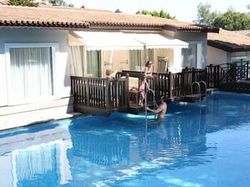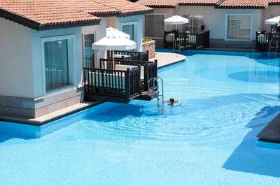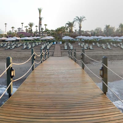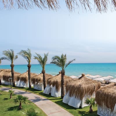 Le Paloma Grida est un véritable microcosme ! Construit comme un petit village turc traditionnel, vous ne vous rendez même pas compte que le resort rassemble près de 500 chambres. Il se compose de petits bâtiments en pierre de taille d’un ou deux étages, que vous découvrez en vous promenant dans de charmantes petites ruelles. On se croirait presque dans un bourg provençal. L’artère centrale de l’hôtel est remplie de petites boutiques. Vous pouvez même aller chez le coiffeur ou prendre un gâteau à la pâtisserie ! Le soir, ce sont les bars qui prennent le relai et font l’animation. Une fois arrivé à la piscine principale, vous aurez du mal à en voir les extrémités tellement le bassin est grand ! Que vous ayez plus ou moins de 18 ans, vous avez tout de même accès à un parc aquatique conséquent. La propriété se termine dans la mer Méditerranée, le long d’une plage de sable de 300 mètres. Vous pouvez lézarder sur un transat ou louer carrément un kiosque pour profiter d’un transat version XXL. Côté activités sportives, vous avez de quoi faire entre les sports nautiques non motorisés, l’aérobic, ou encore le tir à l’arc. Les plus méritants (ou pas) se font plaisir au spa avec le légendaire bain turc et le gommage au gant de crin. La déco orientale et l’ambiance intimiste vous feront oublier tous vos soucis !