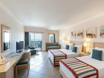 Lumineuse, elle peut offrir une vue captivante sur la méditerranée ou sur la nature que vous pourrez contempler du balcon privé aménagé. Détendez-vous dans les fauteuils confortables, après une longue journée d’activités et laissez vous bercer par la douce brise de la mer.
