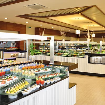 A peine avez-vous posé un pied dans la réception du Paloma Oceana Resort que déjà, vous pouvez contempler la Méditerranée. A l’image du reste de l’établissement, le lobby circulaire est tout simplement immense ! Il vous suffit de vous rendre à l’étage inférieur pour plonger dans l’interminable piscine principale. Une armée de transats vous attendent pour profiter (ou pas) des animations proposées sur place. Les petits s’amusent dans la pataugeoire adjacente mais les plus téméraires vont directement au parc aquatique de l’hôtel, qui se compose de sept toboggans. L’endroit est une vraie fourmilière ! Les enfants se réunissent d’ailleurs au Polly Kids Club où ils sont pris en charge entre 3 et 12 ans. Coloriages, mini-disco, séance de cinéma : vous ne pouvez pas rêver mieux pour occuper les enfants toute la journée. Même les ados ont une salle de jeux dédiée avec billard, baby-foot, ping-pong et consoles de jeux. Pendant ce temps-là, vous prenez du temps pour vous en participant aux nombreuses activités organisées par l’équipe d’animation, ou tout simplement en restant allongé sur un transat à la plage. Vous avez d’ailleurs de la chance ! Cette dernière fait partie des plus belles plages de sable fin de la région. Et si vous optez pour un soin au spa, ne passez pas à côté du circuit de bien-être qui passe par un bain de lait, à la Cléopâtre style !