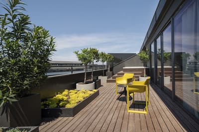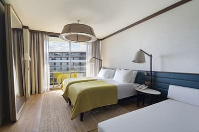 Dans un style résolument contemporain, elle arbore un sol stratifié, un mobilier tendance et se complète par des accessoires design. La chambre peut être dotée d’un lit double ou jumeaux avec une literie de qualité et la salle de bains est équipée de toutes les commodités nécessaires. Ambiance conviviale !