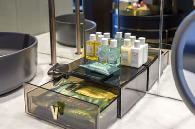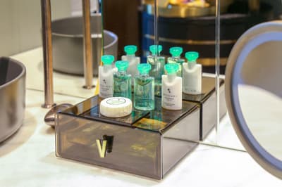 Climatiseur (VRF), Minibar enrichi, Coffre-fort numérique, Télévision LCD/satellite, Bouilloire, Thé & Préparation du café, Téléphone, Espaces douche et WC séparés, 1 cabine d'essayage séparée, Peignoirs et Chaussons, Serviettes, Sèche-cheveux, Miroir de maquillage.