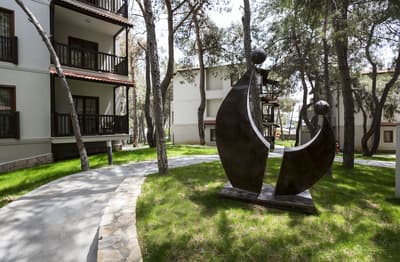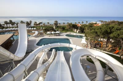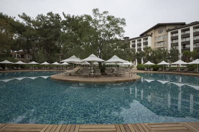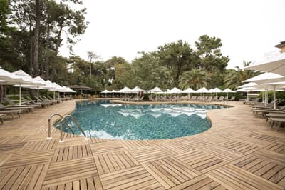 Perdu au milieu de la forêt, le Voyage Sorgun semble avoir poussé en même temps que la végétation ! Malgré son architecture imposante, le bâtiment principal se fond bien dans le décor. Certainement grâce à son toit vert et ses façades marron et blanches. Les teintes sont quasiment presque les mêmes que la flore entourant l’édifice. A n’importe quelle heure du jour ou de la nuit (et grâce à la formule all inclusive), vous pouvez profiter du superbe jardin, grâce aux sympathiques salons aménagés à l’extérieur avec de grandes banquettes. Envie de vous prendre pour la Petite Sirène ? Il va juste falloir trouver la piscine qu’il vous faut. Le choix ne manque pas entre celle réservée au plus de 16 ans, le bassin principal aux formes arrondies, ou encore l’aquapark et ses immenses toboggans. Quand vous avez fait le plein de sensations fortes, allez donc vous faire faire une peau de bébé dans le bain turc du spa, LE passage obligé quand on vient en vacances en Turquie ! En plus, celui-ci est superbe et ses notes parfumées aux senteurs exotiques vous feront oublier les dossiers non traités au bureau… Et si vous venez avec des enfants, no stress, ils auront eux aussi un programme chargé au Tugi Kid’s World. Les équipements sont dignes d’une base de loisirs. Il y a même un véritable manège !