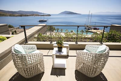 Idéale pour un séjour romantique, elle comporte tous les équipements nécessaires pour des moments agréables. Elle profite d’un grand balcon privé équipé de mobilier en osier pour vous détendre, face à des vues inoubliables sur les eaux cristallines et du célèbre lever de lune de Turquie. À noter que des chambres accessibles aux personnes à mobilité réduite avec douche accessible en fauteuil roulant sont disponibles.
