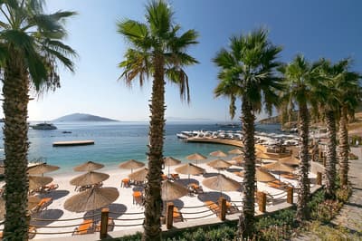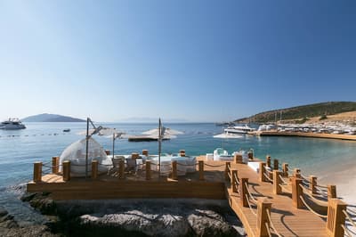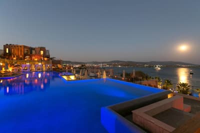 Quand le plus grand groupe hôtelier du monde se charge du management d'un hôtel, c'est plutôt une bonne nouvelle ! Appelez ça le savoir-faire ou l'expérience en version XXL, mais au Caresse de Bodrum, la mécanique est signée Marriott et c'est tant mieux. Ici, vous profitez non seulement d'un lieu idéalement situé, à quelques dizaines de pas de la mer Egée, mais aussi d'un ensemble de seulement 84 chambres, suites, résidences et villa, qui donne un esprit cocon-cosy à l'établissement. Pour parfaire la carte postale, l'hôtel s'est armé de deux restaurants, un bar et un salon. Pour savourer la cuisine régionale, rendez-vous au Restaurant Glass ! Et pour apprécier les épices d'Asie, c'est au Buddha Bar, dont la réputation n'est plus à faire, que ça se passe. C'est élégant et réussi. Surtout que toutes les gourmandises peuvent aussi se déguster en chambre grâce à un service 24/7. Et que les plus sages ne s'effraient pas : pour évacuer leurs délicieux excès, on leur propose un centre de fitness bien équipé. A moins de choisir l'une des deux piscines de l'hôtel, ou encore la plage et ses cours de voile !