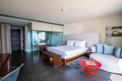 Cette magnifique suite est idéale pour les familles et offre un confort exceptionnel sur la mer que vous pourrez contempler sur les grands balcons aménagés. Elle dispose d’un canapé-lit pour plus de confort et d’un salon pour vous détendre tout en prenant votre apéritif.