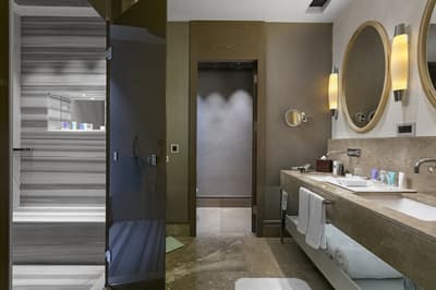 Double évier, Bureau avec lampe orientable, Groupe de sièges intérieur et 1, Menu d'oreillers, Diptyque (durable) Produits pour le bain et la douche, 2 téléviseurs LED, Accès Internet sans fil, Des friandises de bienvenue, Machine à café à capsules Schiller, Fer et planche à repasser.