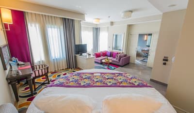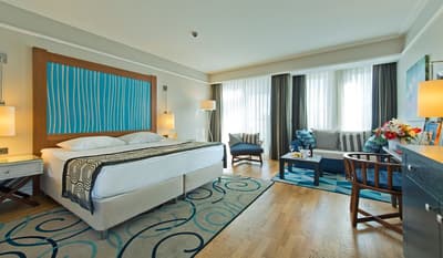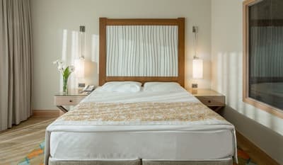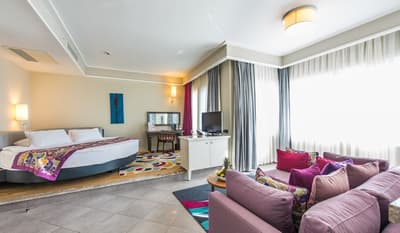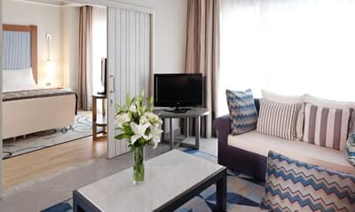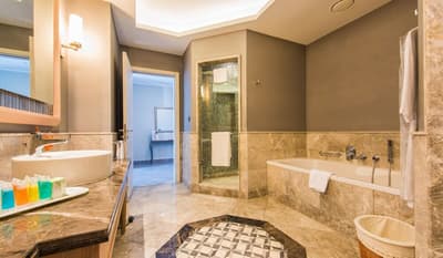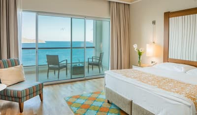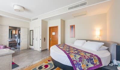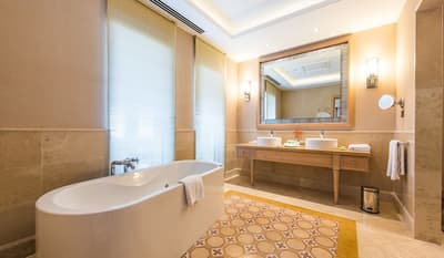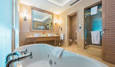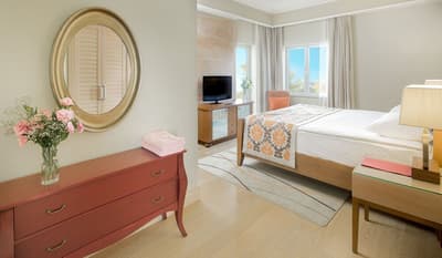 Idéale pour une escapade romantique, elle offre une vue imprenable sur la mer Égée que vous pourrez contempler du balcon aménagé, tout en prenant votre petit-déjeuner. Elle offre toutes les commodités nécessaires pour une lune de miel agréable et à noter que le forfait romantique Lune de Miel inclut: l’utilisation de la « zone Salus per Aqua » du Shang-Du Spa/pendant toute la durée du séjour, le forfait spa pour couples/une fois par séjour, le petit-déjeuner en chambre/une fois par séjour et une photo romantique prise par le photographe professionnel de l'hôtel.