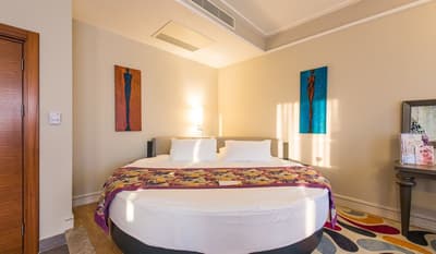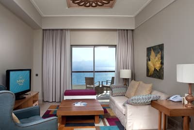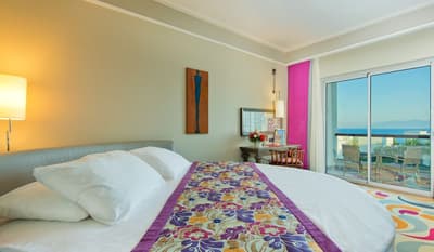 Cette magnifique suite offre une vue exceptionnelle sur le coucher du soleil et l’océan que vous pourrez contempler du balcon aménagé, tout en prenant votre apéritif. Située dans une zone privilégiée, elle dispose d’un salon séparé par des portes françaises doubles pour vous détendre et vous divertir devant la télé. À noter qu’elle comprend un hall d’entrée.