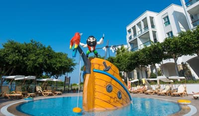 Un grand complexe sur une péninsule privée, avec de super équipements. Vous allez adorer les grandes piscines et la plage avec ses pontons pour les activités nautiques !