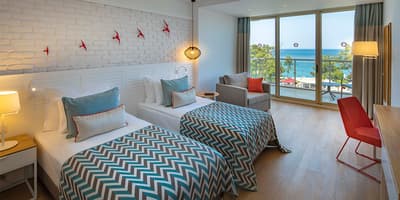 Cette luxueuse chambre profite d’une vue directe sur la mer que vous pourrez contempler du balcon aménagé, tout en sirotant votre boisson préférée. Dès le réveil, ouvrez les grandes baies vitrées et laissez entrer la lumière du soleil pour bien commencer la journée. À noter que vous profiterez des privilèges Akra Kemer.