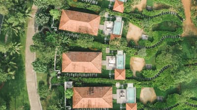 Un classique de l'hôtellerie de luxe sous forme de villas autonomes et de "communs" adaptés à une clientèle exigeante.