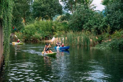 L’ensemble est dans un style de décoration contemporaine et raffiné avec un mobilier d'inspiration vietnamienne, des portes qui s'ouvrent sur une terrasse en bois et des marches en pierre naturelle. La chambre est dotée d’un lit king douillet avec une literie de qualité et la salle de bains est équipée d’une baignoire et de toutes les commodités nécessaires. Ambiance conviviale !