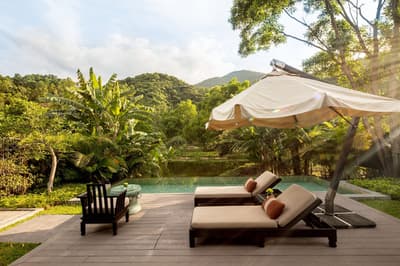 Entourée d’une vue imprenable sur la mer, elle profite d’une terrasse privée en bois et d’une piscine à jets privés pour vous détendre et nager de jour comme de nuit. Vous pourrez vous promener dans le jardin paysager privé jusqu'à la plage de sable à seulement quelques mètres de votre porte. Après une longue journée d'activités, vous pourrez faire une sieste dans la sala thaïlandaise privée.