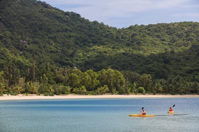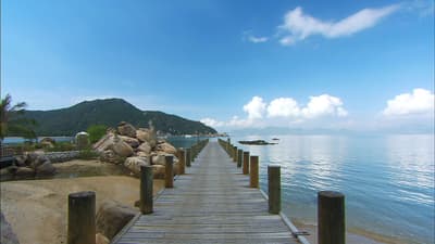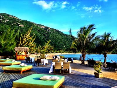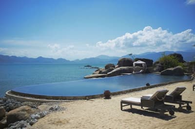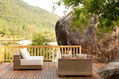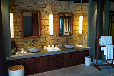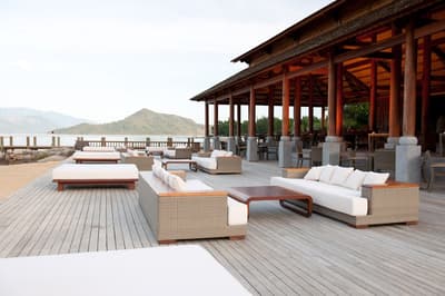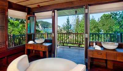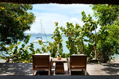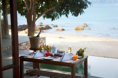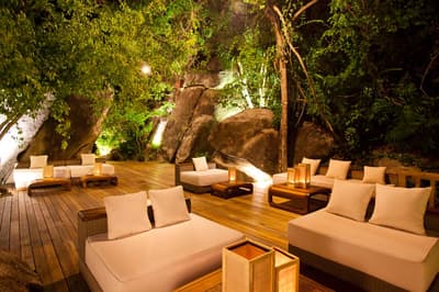 La première chose que vous en verrez - pour peu que vous accostiez par la mer -, c'est cet embarcadère digne d'un James Bond. Très vite, c'est l'évidence : bien que posé sur une péninsule et pas sur une île, cet hôtel tout en simplicité ne fait qu'un avec l'eau et la terre - on peut même dire le roc... Clin d'oeil ? La piscine principale, cernée par les vagues océanes, semble être solidement amarrée pour l'empêcher de dériver. Mais c'est l'omniprésence des rochers tout ronds et des végétaux qui donnent tout son charme à l'établissement. Ce décor très particulier a vu pousser des villas de luxe, presque comme des plantes spontanées. Avec piscine privée, bien entendu ! La plus chic et la plus enviée reste la Rock Hill Pool Villa, perchée sur sa colline et tirant parti des caprices du terrain pour imposer, presque en équilibre, son magnifique bassin exclusif, en bord de terrasse. Dans les communs comme dans les chambres, les matériaux simples sont ennoblis par leur utilisation, comme cette brique qui paraît soudain sur un mur, juste pour donner une touche rousse.