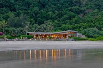 Une chambre douillette dont les murs et les baies s'ouvrent sur une terrasse, une terrasse qui s'ouvre sur une piscine, une piscine qui s'ouvre vers l'horizon marin et le large... Tout est ouverture dans ce très bel hôtel de 35 suites et 14 pool villas, où se mêlent mer de Chine et vieux objets. Ici, les matériaux nobles sont souvent le mieux honorés par les formes simples, et les objets à l'abandon collectés pour venir ici y ressuscitent dans une nouvelle existence pleine de seconds degrés et de clins d'oeil. Si vous aspirez à plus d'intimité, haies, cloisons et treillages, mousselines et moustiquaires, voiles tendus des parasols cloisonnent bien le micro-univers de chacun. Choisis à dessein, les tons écrus se fondent sans heurter le regard avec le sable d'une plage étendue et pourtant privative. Bien sûr, il ne s'agit pas de jouer au pêcheur -même si les villas ont toutes un peu repris le style de leurs maisonnettes-, simplement de vous laisser porter par la douceur d'un univers embrassé par la mer dans ce qu'elle peut avoir d'apaisant.